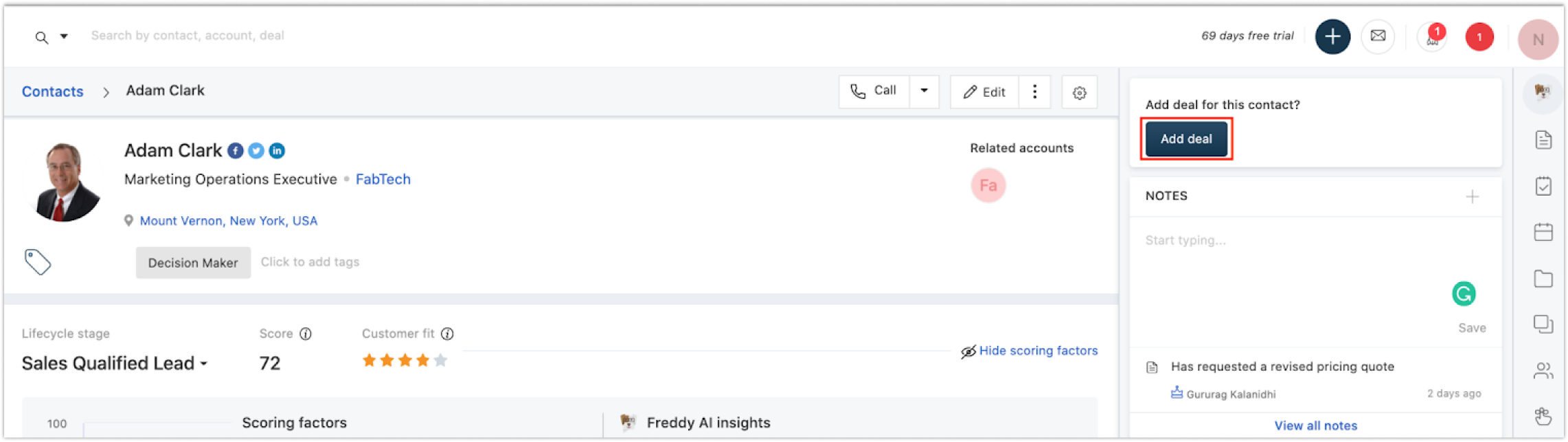 - Anlaşma oluşturmak için ''ADD DEAL'' düğmesine tıklayın.