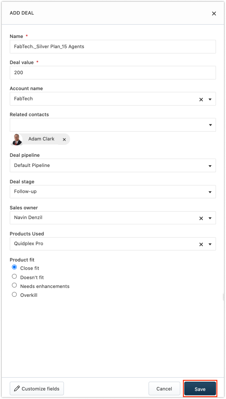 - Deal Name(Anlaşma adı) bölümünde anlaşma için bir ad verin.
