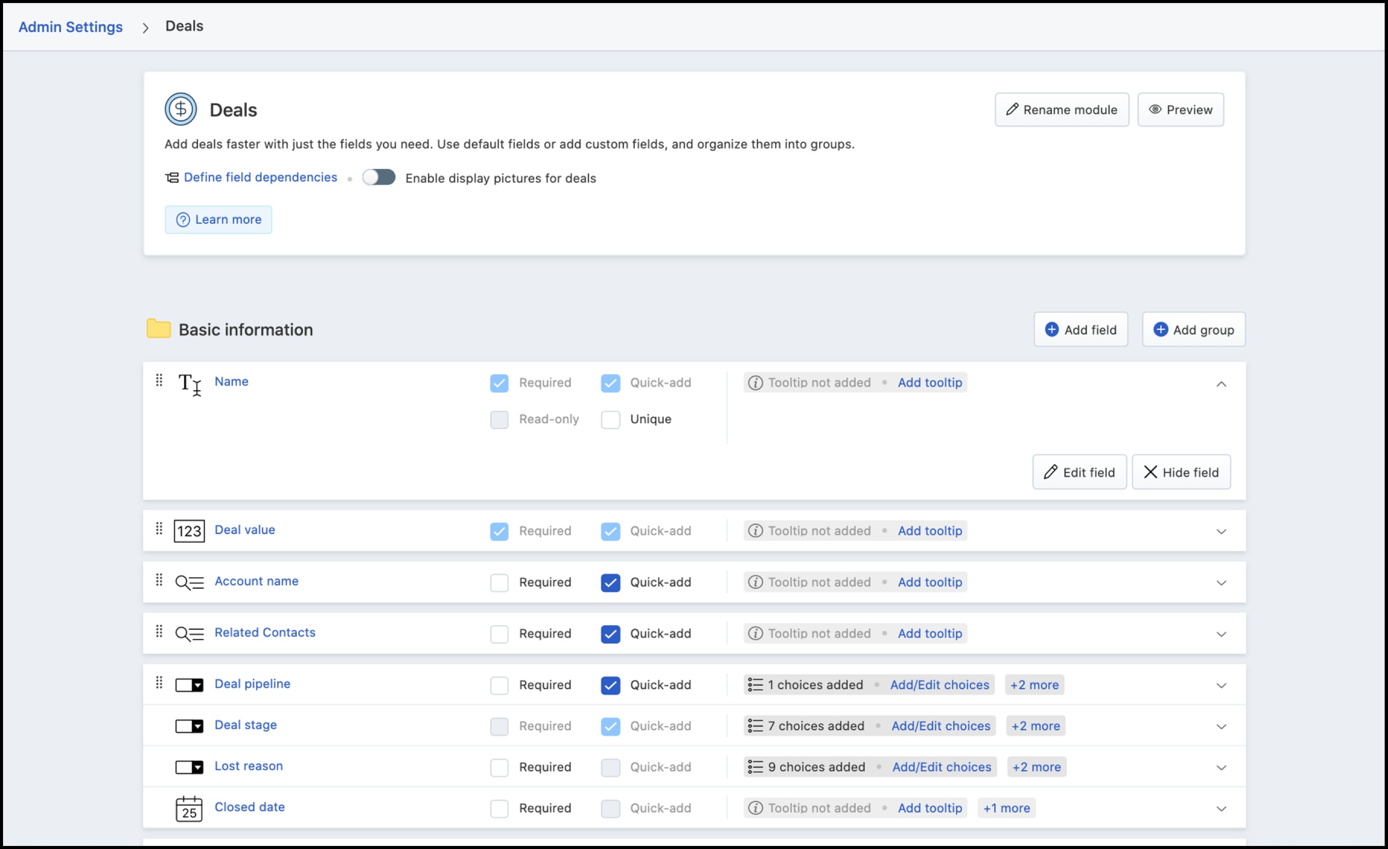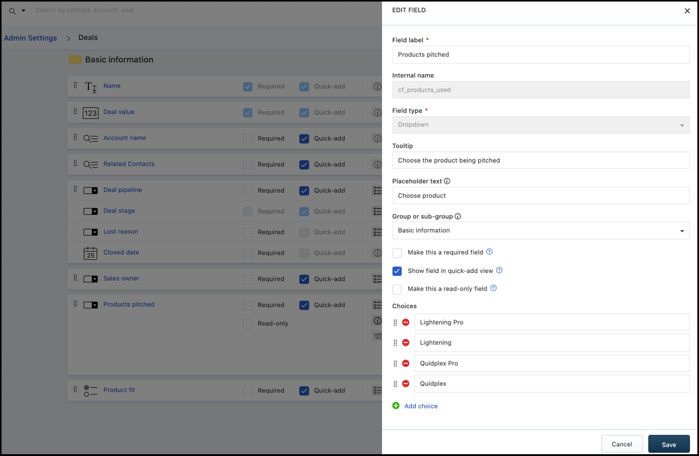 Zorunlu alan, salt okunur alan, benzersiz alan gibi alan özelliklerini yapılandırabilir ve ayrıca alanı hızlı ekleme formunda görüntülemeyi seçebilirsiniz.